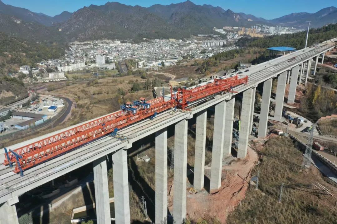 11月29日,云龍至蘭坪高速公路云頭村特大橋梁板架設(shè)完成。