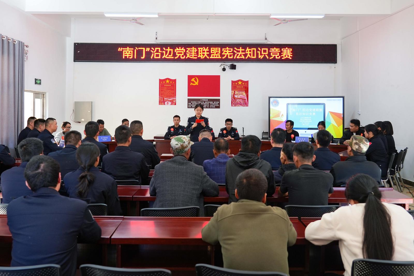 據(jù)悉,2024年3月,“南門”沿邊黨建聯(lián)盟正式組建,成員由上江邊境派出所、蠻云邊境檢查站、花橋壩邊境檢查站“南門衛(wèi)士”黨建帶與駐上江鎮(zhèn)的20家黨委、黨支部組成,形成了“聚合力、求實(shí)效、齊發(fā)展”聯(lián)創(chuàng)聯(lián)建、警地(企)多贏的黨建共同體新格局,有效推動(dòng)基層社會(huì)治理與黨建聯(lián)創(chuàng)聯(lián)建融合共進(jìn),提升基層黨建引領(lǐng)邊疆民族地區(qū)基層治理效能。此次知識(shí)競(jìng)賽,正是“南門”沿邊黨建聯(lián)盟在法治建設(shè)領(lǐng)域的一次生動(dòng)實(shí)踐。