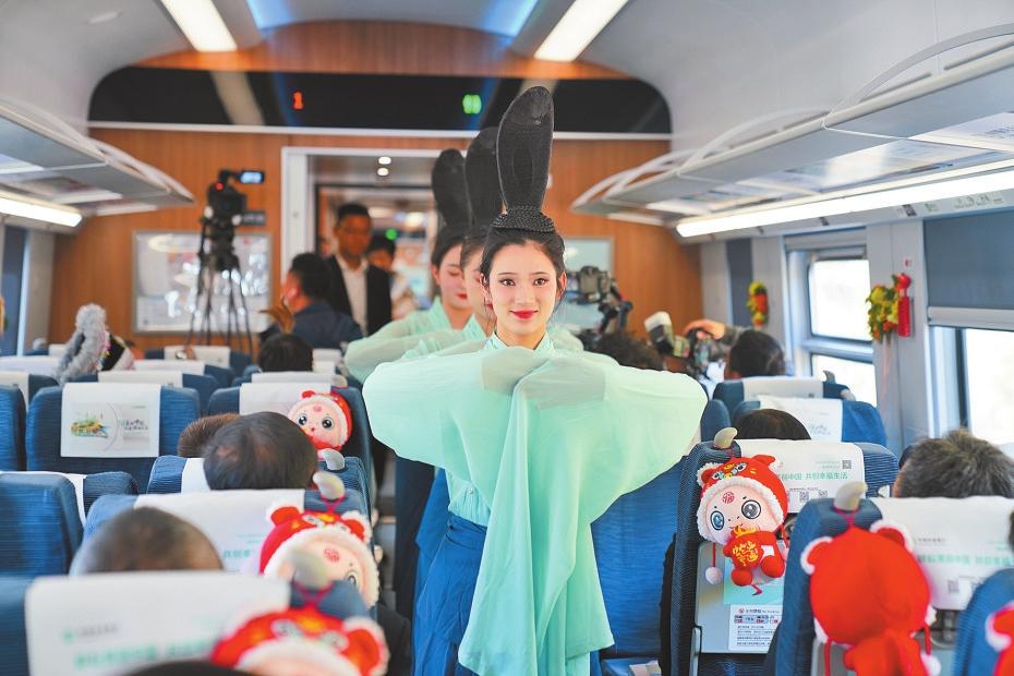嘹亮的歌聲拉開了車上活動的序幕?!皬?fù)興號”列車行駛過程中,身著“只此青綠”服裝及云南民族服裝的農(nóng)行云南省分行員工以生動有趣、豐富多彩的互動內(nèi)容貼近乘客,用心普及金融知識,讓大家近距離體驗(yàn)農(nóng)行的用心服務(wù)。列車上還開設(shè)了“消保知識小課堂”,銀行員工載歌載舞宣傳云南豐富旅游資源和民族文化的同時,向乘客普及金融反詐知識、金融消費(fèi)者權(quán)益等基礎(chǔ)金融知識,以創(chuàng)新、貼心的方式將金融及消保知識傳遞給廣大消費(fèi)者。這段旅程不再是一次簡單的列車旅行,而是一次文化與金融的深度融合,開啟了農(nóng)行云南省分行服務(wù)地方經(jīng)濟(jì)、傳播企業(yè)文化、普及金融知識、提升品牌形象的新篇章。