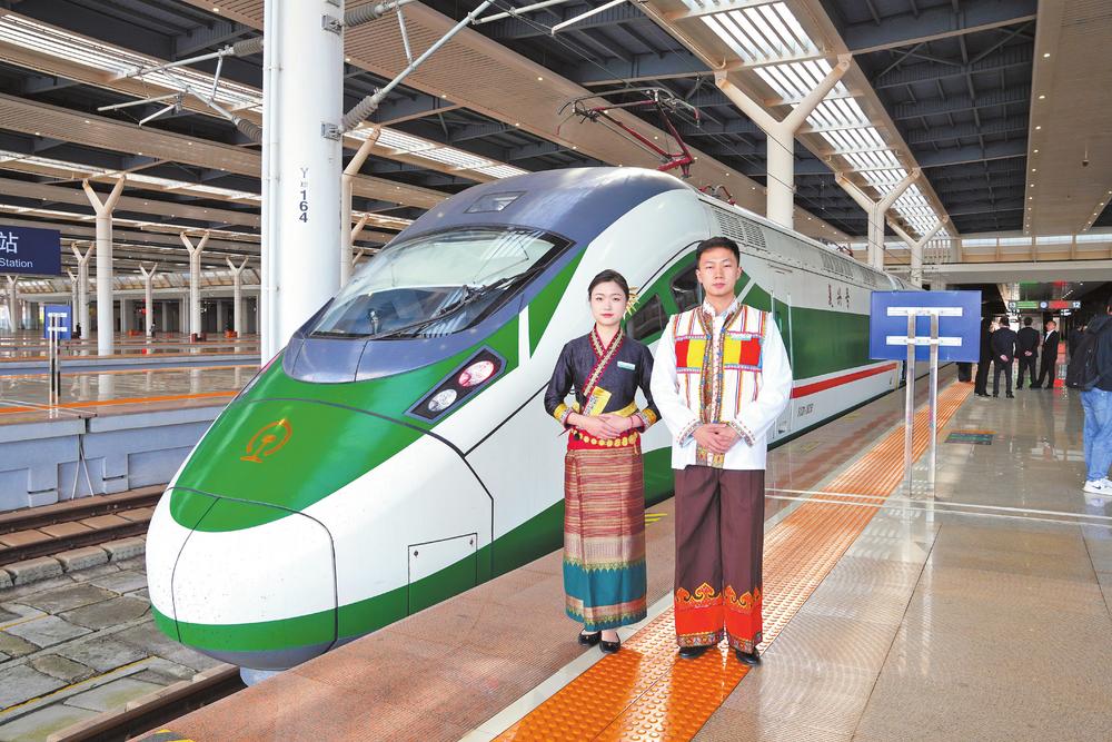 一軌相通,命運(yùn)與共。2021年12月3日,高質(zhì)量共建“一帶一路”標(biāo)志性工程中老鐵路全線通車運(yùn)營。3年來,黃金線路極大促進(jìn)了區(qū)域內(nèi)的人文交流與經(jīng)濟(jì)發(fā)展,成為一條共商共建共享的開放之路。