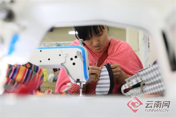走進(jìn)匹河怒族鄉(xiāng)指揮田社區(qū)福貢縣相宜民族用品農(nóng)民專業(yè)合作社,搬遷群眾在縫紉機(jī)前認(rèn)真縫制傈僳族服裝、傈僳包等民族服飾品。