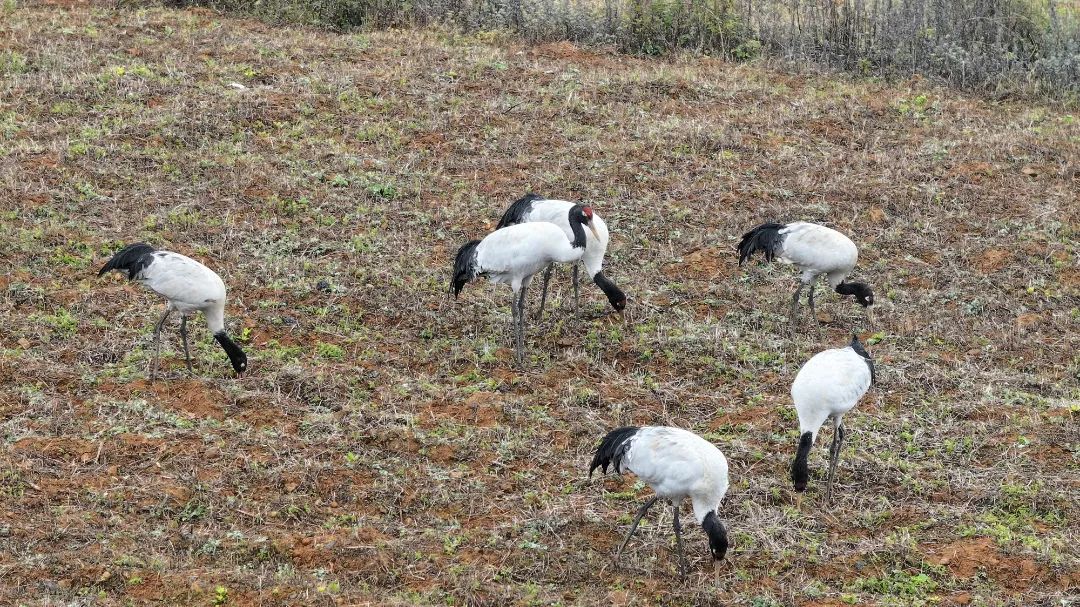 為確保黑頸鶴有良好的棲息環(huán)境,當(dāng)?shù)攸h委政府安排固定人員適時(shí)進(jìn)行投食,動(dòng)員群眾全力保護(hù)好它們的生活環(huán)境。