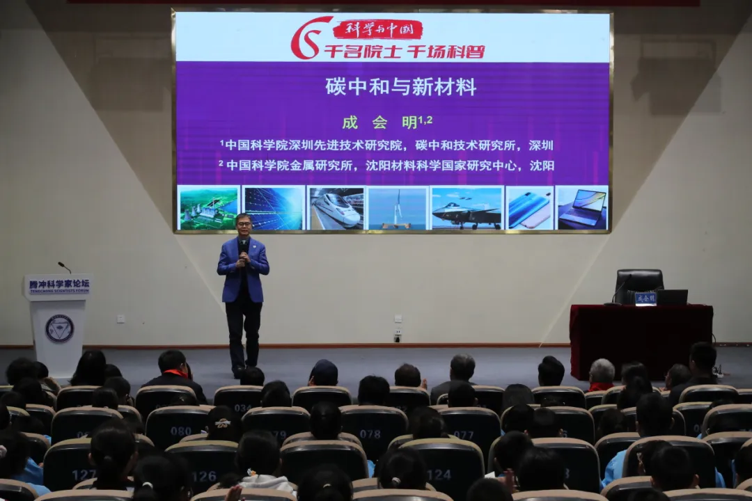 成會(huì)明院士現(xiàn)任中國(guó)科學(xué)院深圳先進(jìn)技術(shù)研究院碳中和技術(shù)研究所所長(zhǎng),主要從事新型儲(chǔ)能材料與器件、太陽能轉(zhuǎn)化材料等研究與開發(fā)?!笆裁词翘贾泻?、什么是新材料,新材料對(duì)碳中和能起到什么作用?”他以《碳中和與新材料》為題,從實(shí)現(xiàn)碳中和的重要性、實(shí)現(xiàn)碳中和的可能路徑、新材料對(duì)碳中和的支撐作用、碳中和愿景四個(gè)方面,用淺顯易懂的語言向同學(xué)們介紹了碳中和對(duì)中國(guó)的戰(zhàn)略意義,實(shí)現(xiàn)碳達(dá)峰碳中和需要達(dá)成“六化”,新材料、新能源對(duì)碳中和具有重要戰(zhàn)略地位,以及碳中和的廣闊前景。