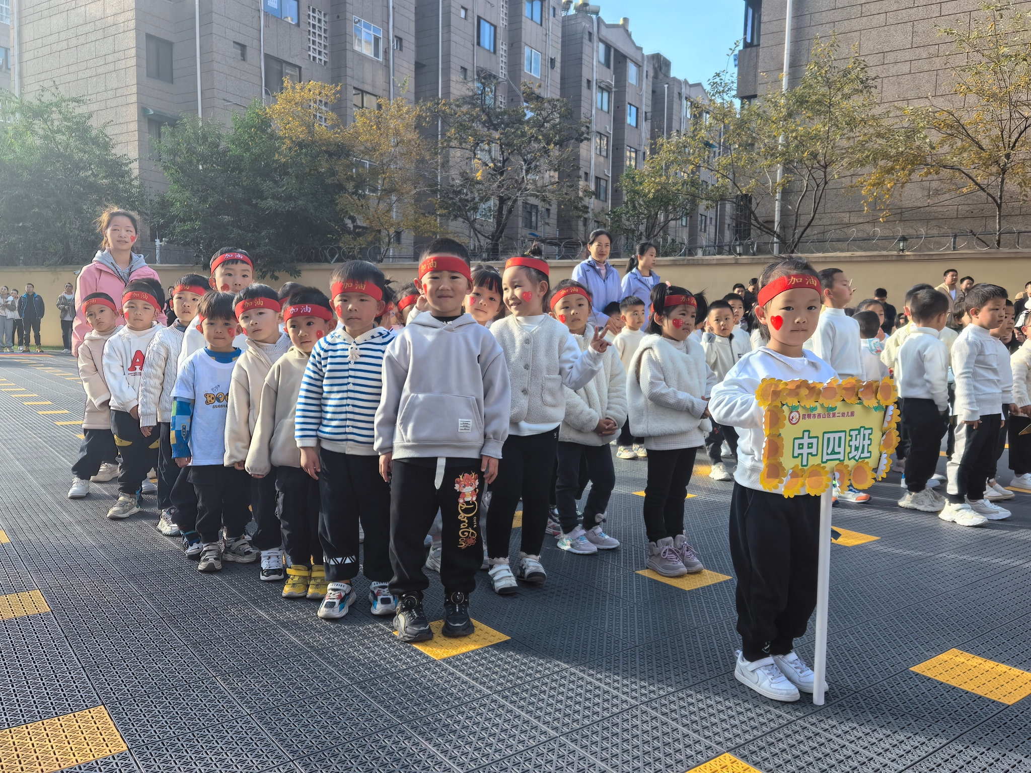 中四班的孩子們,身著統(tǒng)一的白色上衣、黑色運動褲,腳踏淺色運動鞋,頭戴印有 “加油” 字樣的紅色發(fā)帶,個個精神抖擻,恰似一群即將奔赴賽場的小勇士。他們邁著整齊的步伐走向操場,口號 “四班四班,揚起風(fēng)帆,拼搏賽場,銳不可當(dāng)” 響徹全園,彰顯著團結(jié)一心、勇往直前的決心。