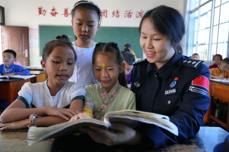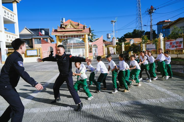 “我們學(xué)習(xí)在獨(dú)特的邊防小學(xué),團(tuán)結(jié)互助親如一家,同宗同族,血脈相連是永遠(yuǎn)不變的情愫,同一個(gè)世界,同一個(gè)學(xué)堂,見證著兩國(guó)胞波情誼,世代友好的歷史……”課間,銀井邊防小學(xué)孩子們稚嫩的童音大聲唱著由銀井分站與學(xué)校共同打造的《邊防小學(xué)校歌》,唱出了中緬胞波情誼世代相承的希望,久久回蕩在邊境線上……