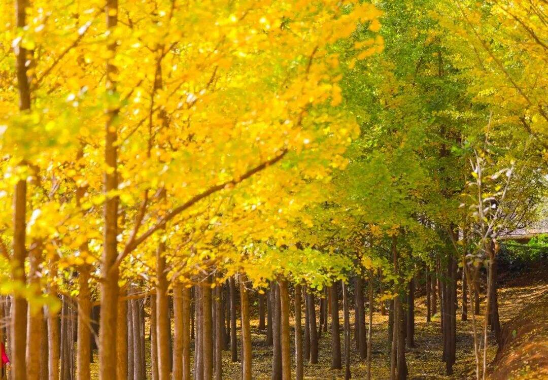昆明學(xué)院銀杏主要集中在學(xué)院西門(mén)進(jìn)門(mén)后的明德路兩旁,這里的銀杏樹(shù)枝葉茂密,此時(shí)銀杏葉逐漸變黃,在陽(yáng)光的照耀下,呈現(xiàn)出一片金黃的美景,且周邊有草坪,整體環(huán)境優(yōu)美,非常適合拍照,容易出片。