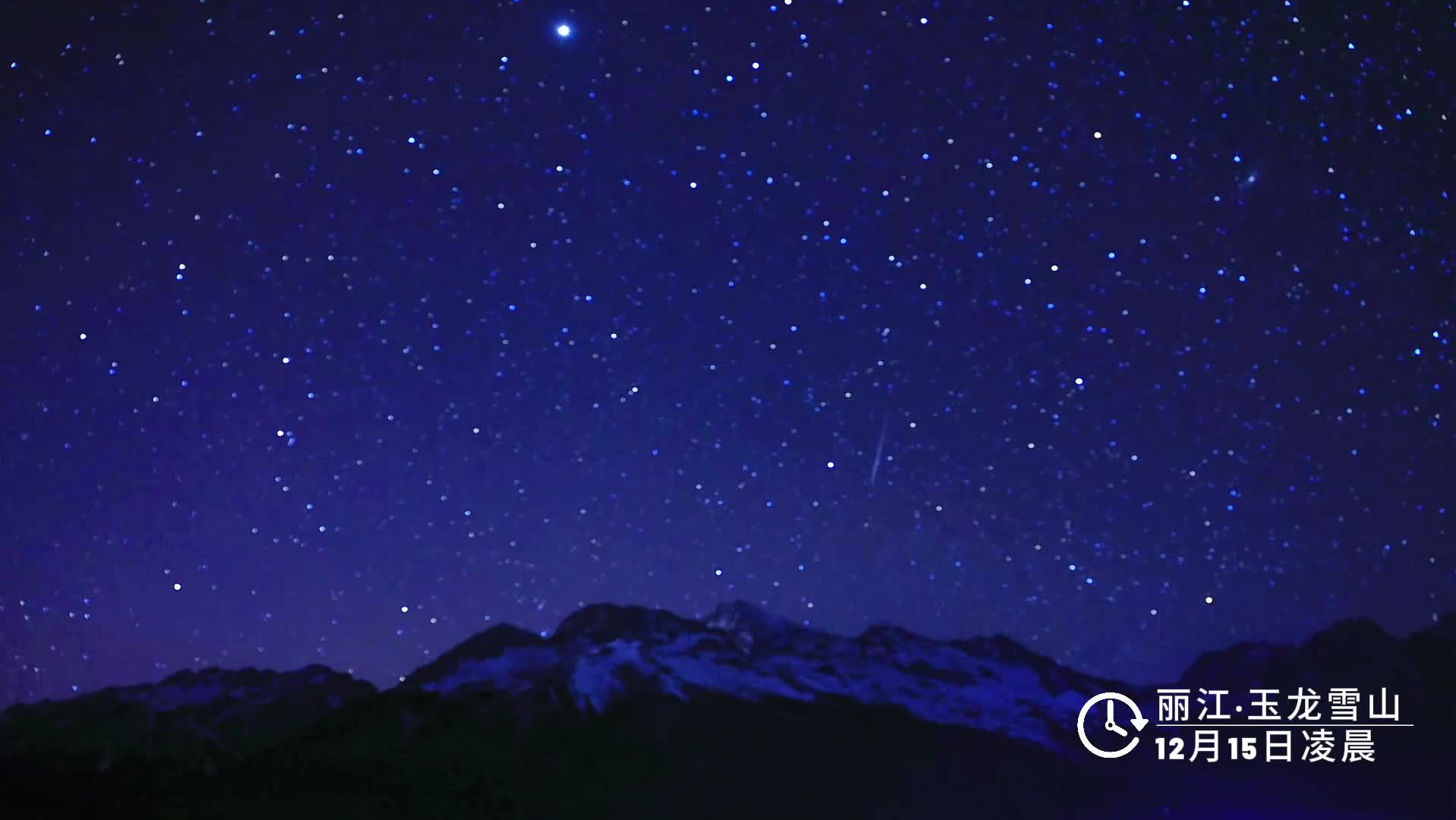 12月14日,流星劃過玉龍雪山夜空的瞬間。(麗江融媒 記者李揚 攝)