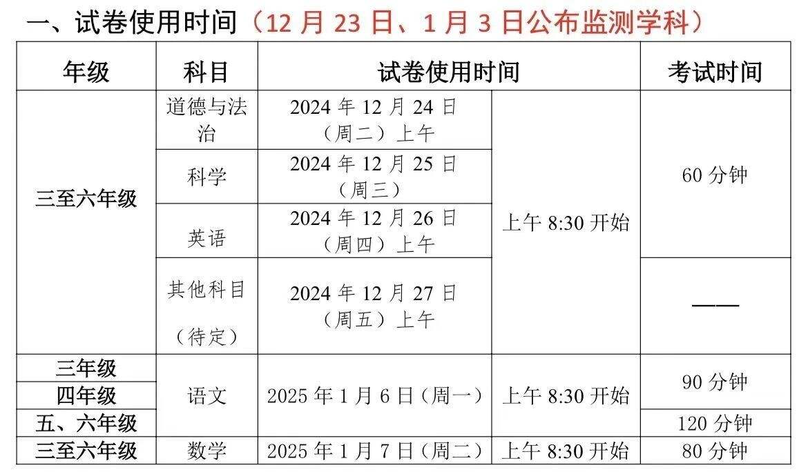 一二年級多元化綜合測評,由學校在2025年1月6日—7日完成
