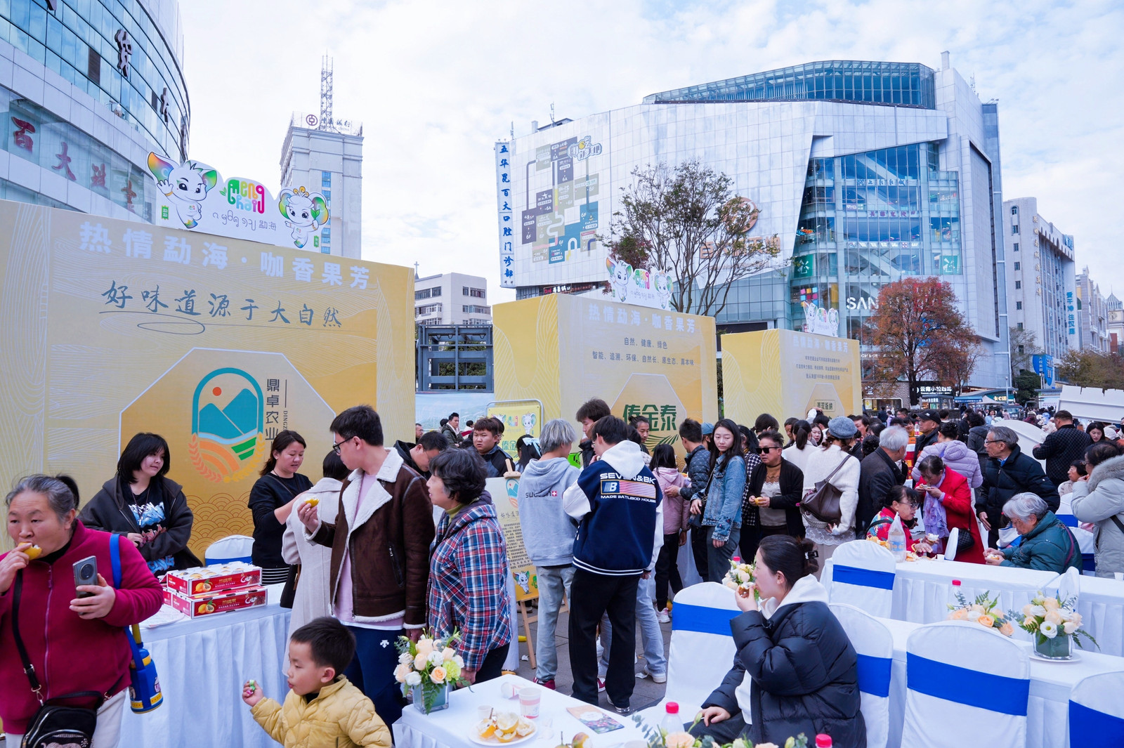 簽約儀式結束后,現場市民紛紛前往簽約企業(yè)的產品展示區(qū),體驗或品嘗來自勐海雨林的獨特美味。