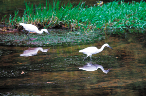 白鷺在盤(pán)龍江棲息覓食。資料圖