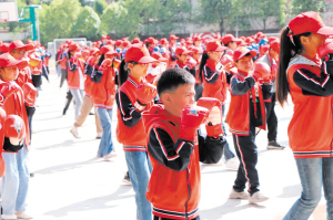 祿勸縣撒營盤鎮(zhèn)中心學校學生在打拳擊操。 撒營盤鎮(zhèn)供圖