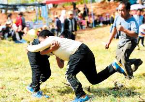 石林縣素有“摔跤之鄉(xiāng)”的美譽,每逢節(jié)慶日都會舉辦盛大的摔跤比賽。2011年,彝族摔跤被列入國家級非物質(zhì)文化遺產(chǎn)名錄。