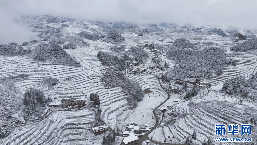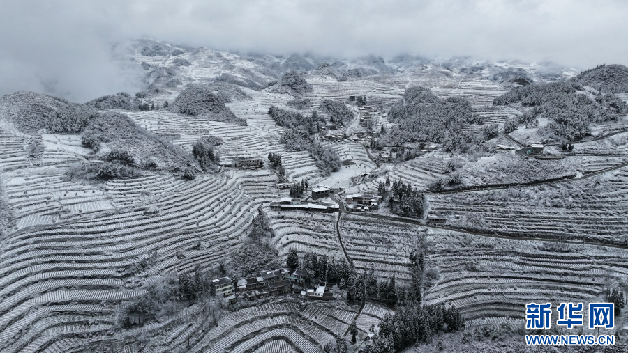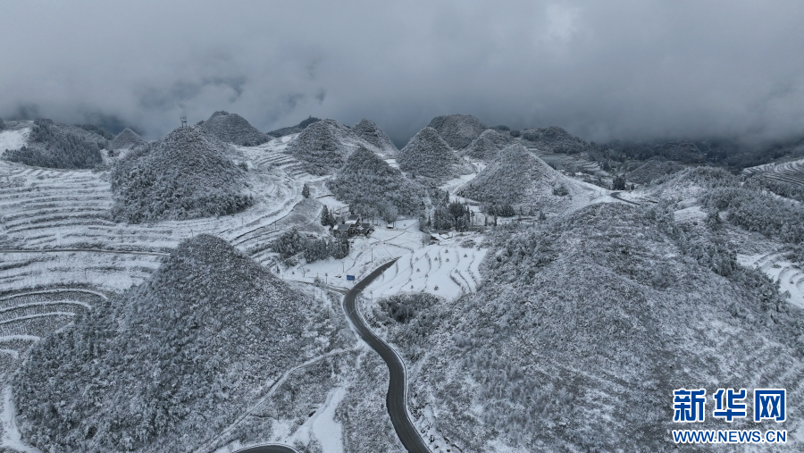航拍鏡頭下的雪后小石林。新華網(wǎng)發(fā)