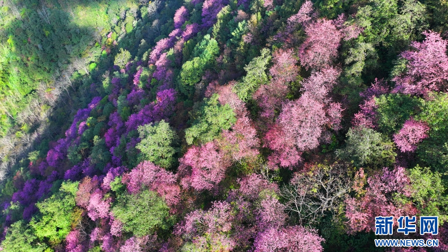 冬櫻花綻放林間(12月18日攝)。新華網(wǎng)發(fā)(施甸縣融媒體中心供圖)