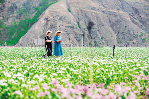 游客在東川區(qū)湯丹鎮(zhèn)小江四季花海參觀(guān)游玩。新華社