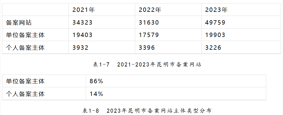 備案網(wǎng)站49759個,同比增長57.3%,占全省備案網(wǎng)站的比例為75.3%;單位備案主體19903個,同比增長13.2%;個人備案主體3226個,同比減少5.3%。
