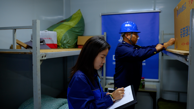 說起他們生活的項目部產(chǎn)業(yè)工人園區(qū)雙人間宿舍,楊娟覺得像個小家一樣,功能齊全方便,超出了他們夫妻以往對工地宿舍的想象。“食堂里每頓菜都不重樣,這幾天冬至剛過,食堂還準(zhǔn)備了冬瓜排骨、蘿卜羊肉等燉湯給大家暖身子?!崩铋_紅說,出工地100米左右,不到3分鐘就能回到宿舍,食堂吃了飯,還能和工友約著打打乒乓球、臺球,擼鐵、蹬單車、下棋、看書,“想在室外打籃球、羽毛球也沒問題,我們經(jīng)常約比賽,工地生活玩場很多,經(jīng)常下了班還挺忙的?!崩铋_紅笑著說。