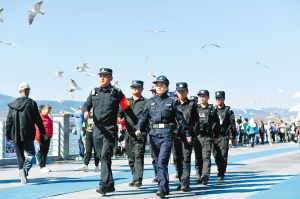 輔警與“紅袖標”一起在海埂大壩巡邏。 昆明市公安局供圖