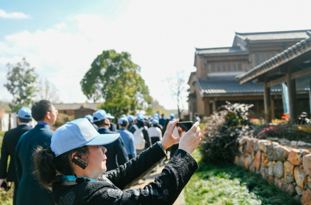 在講解員的引導下,大家沿著步道穿過凈水濕地來到“靠山、濱湖、水繞”的美麗村莊——臥龍古漁村,參觀昆明傳統(tǒng)的“一顆印”建筑和民俗博物館,看到綠道沿途的景致和民俗文化完美融合,大家紛紛拿起手機留住眼前的美景。