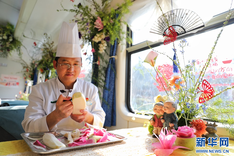 用食材雕刻鮮花造型(1月14日攝)。新華網(wǎng)發(fā)(楊紫軒 攝)