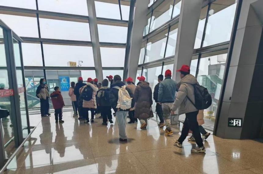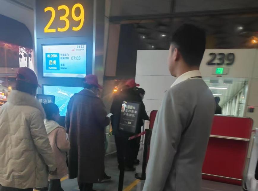 5點(diǎn)10分左右,醫(yī)療團(tuán)隊(duì)一行94人到達(dá)機(jī)場。在祥鵬航空工作人員的協(xié)助下,快速完成值機(jī)手續(xù)辦理、通過安檢,并優(yōu)先登機(jī)。