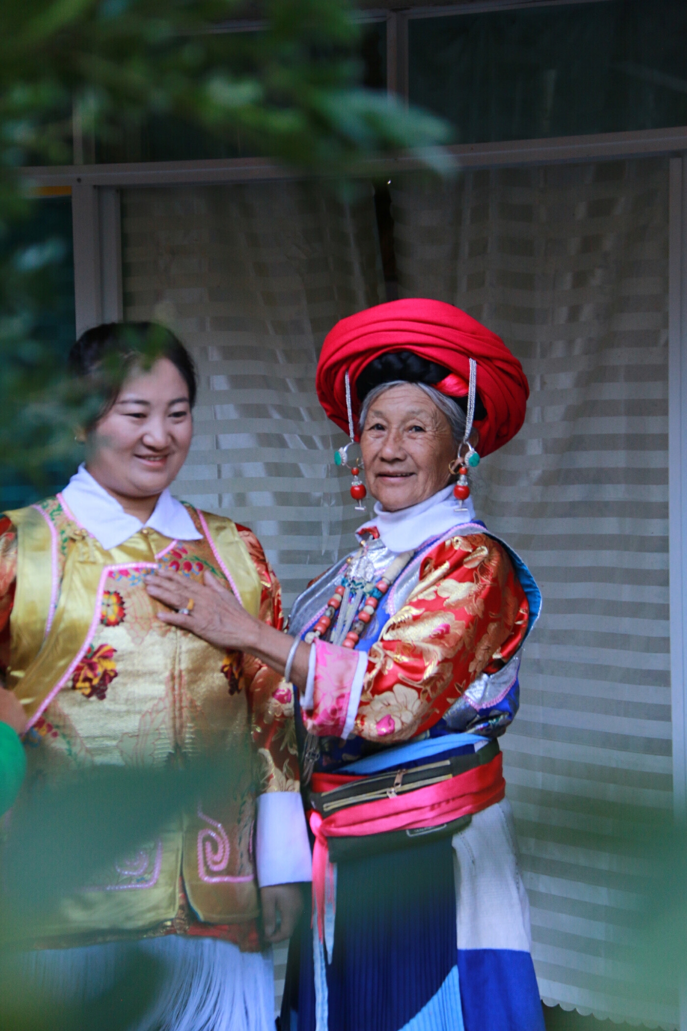身穿民族服裝的和萬(wàn)春老人(右)。 和利全 攝