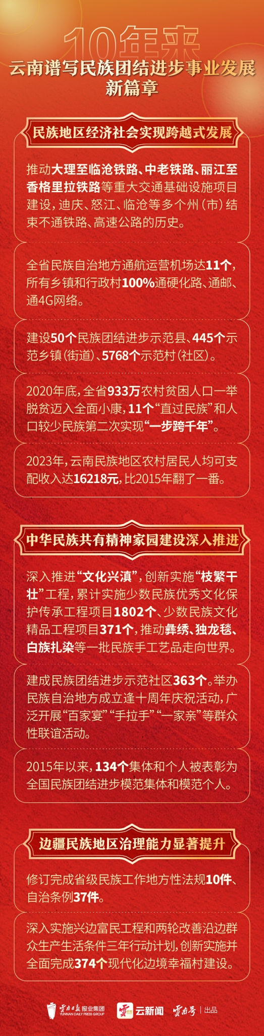 牢記囑托,團(tuán)結(jié)奮進(jìn)。十年來(lái),云南譜寫(xiě)了民族團(tuán)結(jié)進(jìn)步事業(yè)發(fā)展新篇章——
