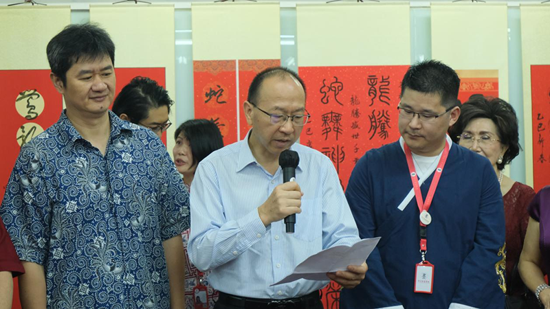 新華網(wǎng)雅加達(dá)1月20日電 記者陶方偉 葉平凡 1月19日,由印尼書法家協(xié)會(huì)和印尼書畫學(xué)院聯(lián)合主辦的“蛇舞神州、盛世千年”乙巳蛇年春節(jié)書法揮春活動(dòng)在雅加達(dá)舉行,200余位來自印尼書法、藝術(shù)、教育、華人社團(tuán)以及華人企業(yè)的各界人士齊聚一堂,共慶中國傳統(tǒng)佳節(jié)。