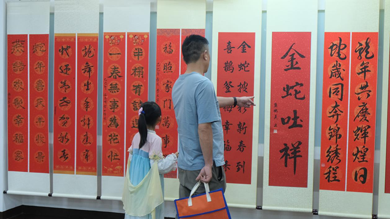 活動(dòng)現(xiàn)場內(nèi)容豐富,包括春聯(lián)創(chuàng)作、中文歌曲演唱、武術(shù)表演、贈(zèng)送蛇年吉祥物等。在春聯(lián)創(chuàng)作環(huán)節(jié),印尼青少年組、成人組及老年組的書法愛好者們紛紛潑墨揮毫,書寫出一幅幅吉祥喜慶的春聯(lián)作品,表達(dá)了對(duì)蛇年的美好期盼。此外,現(xiàn)場還安排了富有中國傳統(tǒng)特色的歌舞和武術(shù)表演,為觀眾帶來視覺與文化的雙重盛宴。