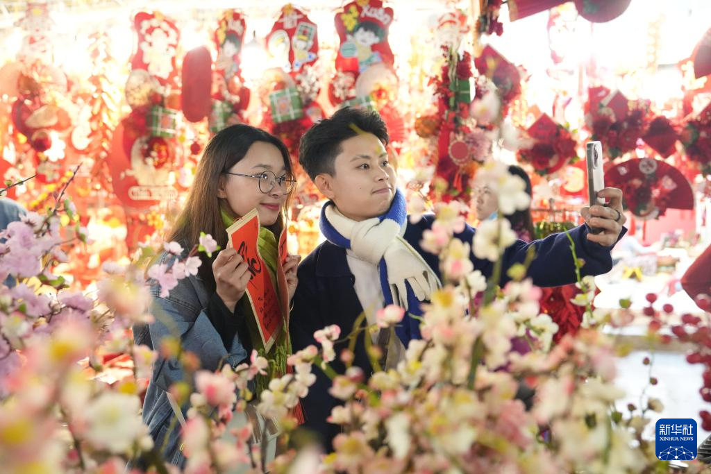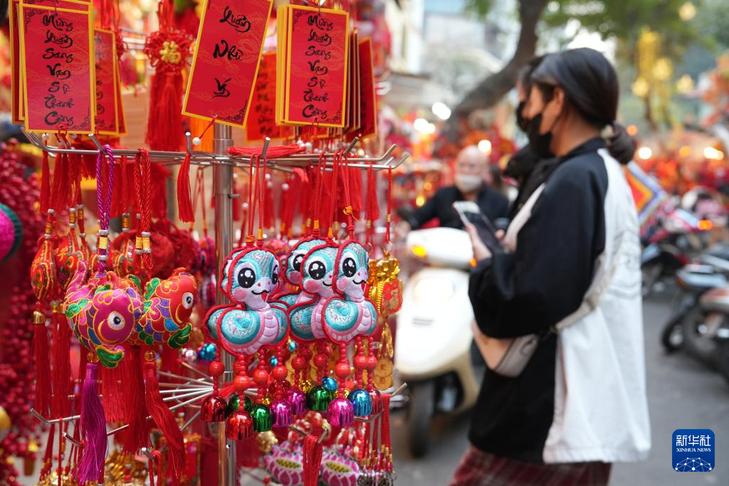 農(nóng)歷春節(jié)是越南重要的節(jié)日。求字、貼春聯(lián)、買桃花、包方粽等傳統(tǒng)習(xí)俗延續(xù)至今。春節(jié)前夕,越南首都河內(nèi)的馬市街早已換上了一種新顏色——“春節(jié)紅”。民眾涌向此處,置年貨、拍美照,傳統(tǒng)年味飄出新風(fēng)尚。新華社記者 胡佳麗 攝