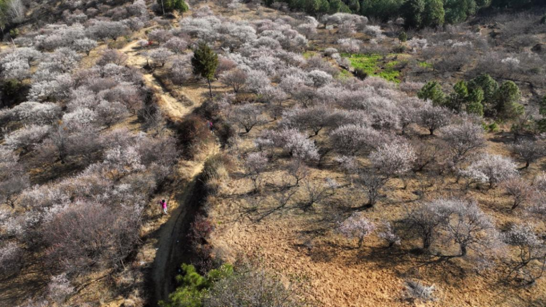 占地約1.2萬畝,品種以鹽梅、苦梅、照水梅、胭脂梅為主。每年1月梅花競相開放,1月中旬至2月中旬為最佳觀賞時期。賞花沿線有零散分布的農(nóng)家樂,可以品嘗當?shù)靥厣朗?,如:農(nóng)家飯、青梅酒、各類梅子果脯等。