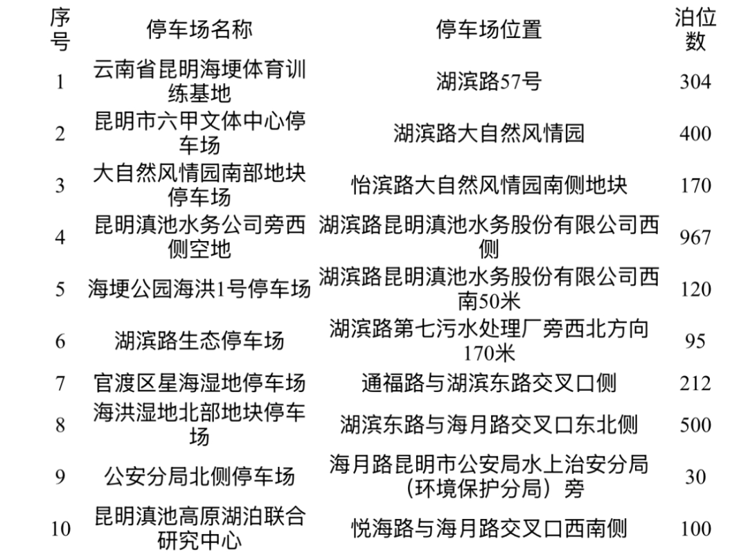 海埂公園、海洪濕地片區(qū)10個停車場 設(shè)置2989個停車泊位
