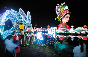 美麗的阿詩瑪是燈展上最靚的明星。 記者趙偉攝