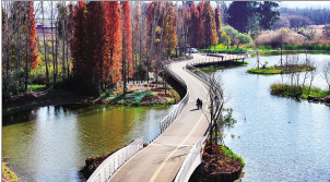綠道上,孩子們騎著單車歡笑而過,情侶們手牽手漫步棧橋,一位銀發(fā)老人坐在觀景臺長椅上望著湖面感慨:“這景致太美了!”