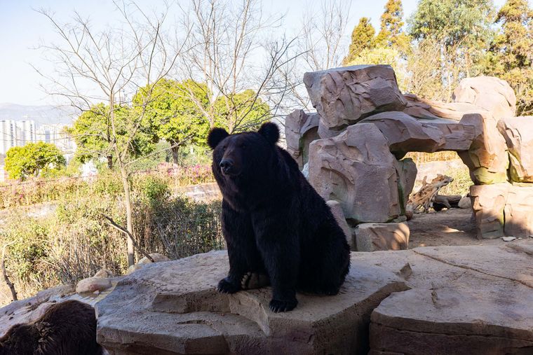 在熊類觀看平臺,剛搬入新家的棕熊、亞洲黑熊、馬來熊,也開始品嘗工作人員為他們準(zhǔn)備的蔬果“元宵”,吃完元宵,怕熱的棕熊和亞洲黑熊可以在新家的泳池里舒舒服服泡個澡。