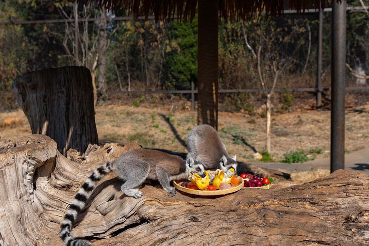 動畫電影中的猴子大王“朱力安”的原型——環(huán)尾狐猴,也加入“元宵派對”中來,工作人員為他們定制了,他們喜歡的香蕉船、火龍果、折耳根等“元宵”。