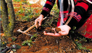 63歲的村民畢永高說:“去年我一次挖到7.8公斤黑松露,賣了2000多元,現(xiàn)在陸陸續(xù)續(xù)賺了5萬多元?!?/p>