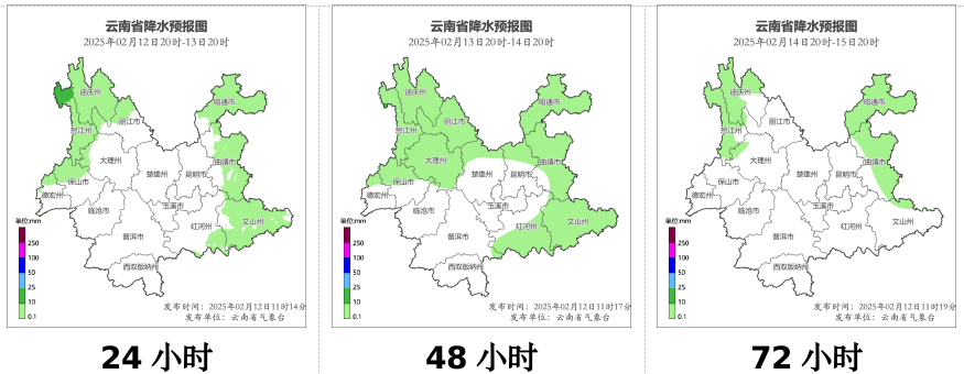 昨天(2月11日),怒江州北部降中到大雨,香格里拉市、德欽縣出現(xiàn)雨夾雪或小雪,迪慶州西部、昭通市北部、曲靖市東部、文山州南部、紅河州南部降小雨,其他地區(qū)晴間多云。預(yù)計未來三天,滇西北、滇東北持續(xù)有雨雪天氣,其他地區(qū)以晴間多云天氣為主,清晨中東部和西南部局地有大霧,午后西部、中東部局地有陣性大風(fēng)。