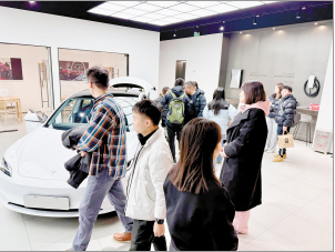 昆明萬象城特斯拉體驗(yàn)店內(nèi)人頭攢動(dòng)。 記者郭曼攝