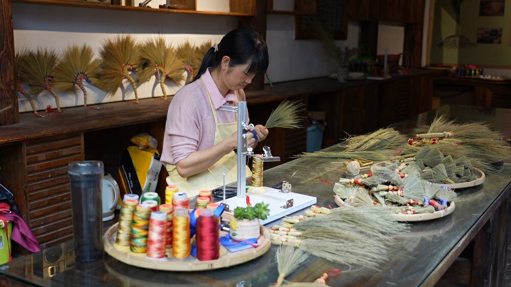 為壯大笤帚產(chǎn)業(yè),龍灑村以黨組織領(lǐng)辦農(nóng)民合作社為陣地,將笤帚進(jìn)行精細(xì)化、特色化加工,積極探尋衍生產(chǎn)業(yè)。董麗娟帶頭研發(fā)制作掛飾、擺件、禮品等精美飾品,不斷增加產(chǎn)品種類,依托“撒谷洞”“龍灑笤帚”2個(gè)注冊(cè)商標(biāo),形成龍灑特色笤帚品牌。