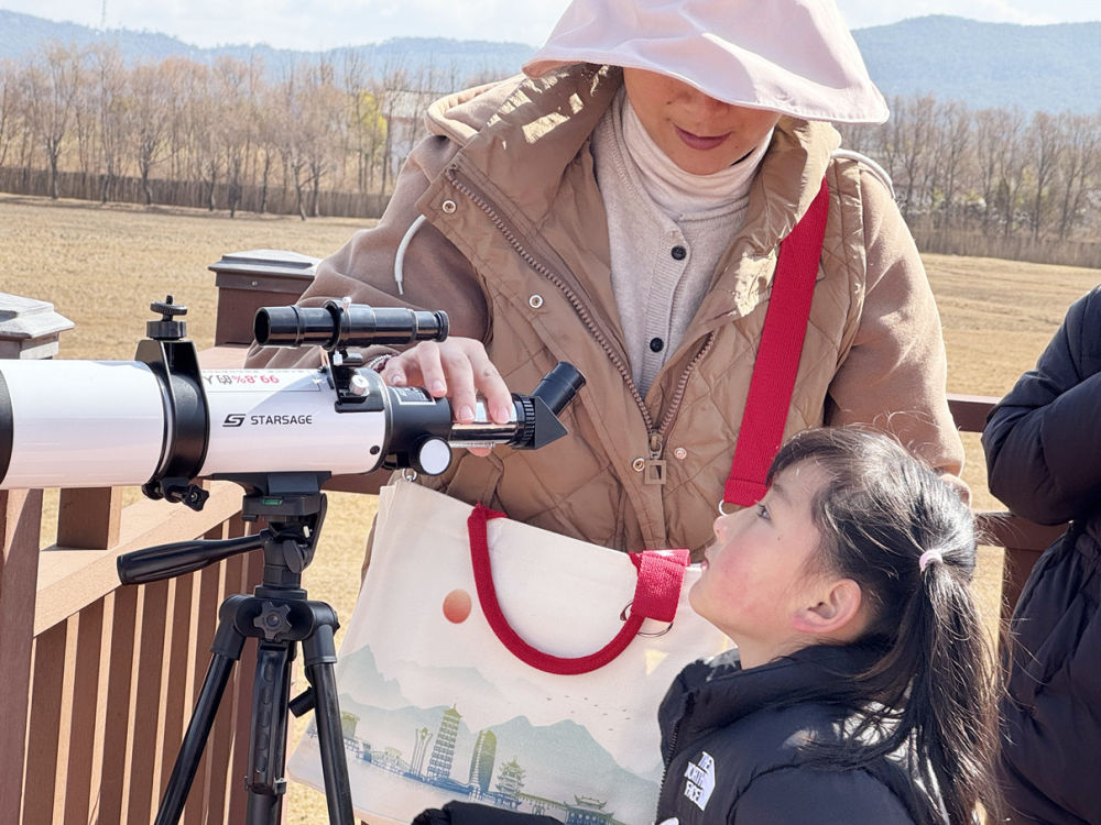 “看!那群是不是灰雁?共有12只。”小朋友們用望遠(yuǎn)鏡一邊探尋候鳥(niǎo)蹤跡,一邊興奮地說(shuō)著。在工作人員帶領(lǐng)下,參加活動(dòng)的家庭分成6個(gè)小組深入濕地腹地。孩子們化身“小小科學(xué)家”,用望遠(yuǎn)鏡追蹤鳥(niǎo)群動(dòng)態(tài),在記錄本上認(rèn)真勾畫(huà)鳥(niǎo)類的特征標(biāo)記。一位父親輕聲提醒女兒:“輕點(diǎn)按快門,別驚擾它們。”此刻,觀鳥(niǎo)不僅是知識(shí)的實(shí)踐,更成為傳遞生態(tài)倫理的溫情課堂。