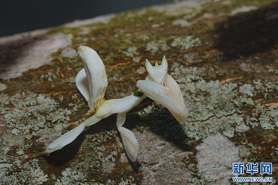蘭花螳螂停留在樹干上(資料圖)。新華網(wǎng)發(fā)(馬麗芳 攝)