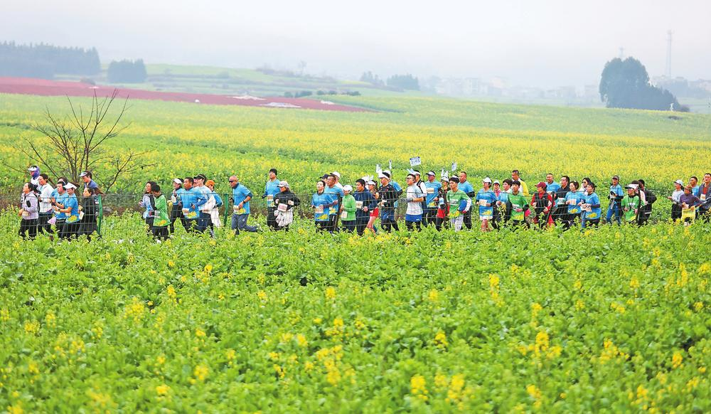 本次賽事以“相聚曲靖 暢游花?!睘橹黝},設(shè)有馬拉松(42.195千米)、半程馬拉松(21.0975千米)和歡樂跑(5千米)3個組別。賽道以羅平縣體育中心為起點,途經(jīng)金雞峰叢、老尖山、獅子山等景觀,打造了一條穿越花海、峰林、水色、霧景的賽道,展示了羅平優(yōu)美的自然風光與豐富的民俗文化。此次賽事還增設(shè)了“警察賽中賽”特色項目,用警號作為跑者編號,讓同步參賽的警察參與賽道管理。