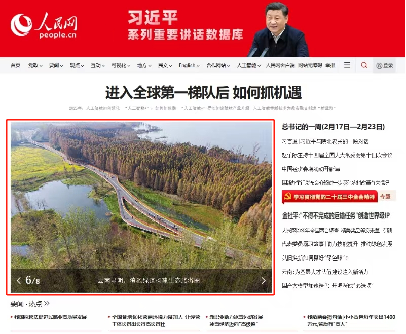 昆明信息港訊 2月24日,人民網(wǎng)總網(wǎng)首頁刊發(fā)文章《云南昆明:滇池綠道構(gòu)建生態(tài)旅游圈》,關(guān)注昆明滇池綠道構(gòu)建生態(tài)旅游圈,在推動湖濱生態(tài)空間綜合治理的同時,整合滇池流域旅游資源,帶動沿線區(qū)域產(chǎn)業(yè)融合升級。詳情如下: