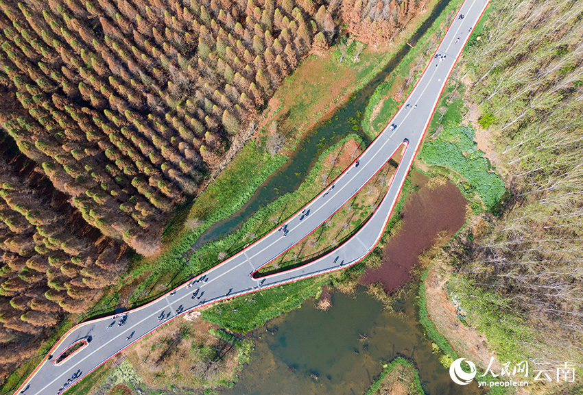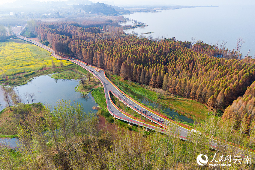市民和游客在滇池綠道上健身、漫步、騎行。人民網(wǎng)記者 李發(fā)興/攝