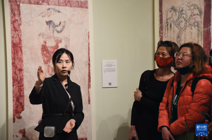 2月25日,陜西歷史博物館社教部館員黃姣(左一)在向觀眾講解。新華社記者 劉斐 攝