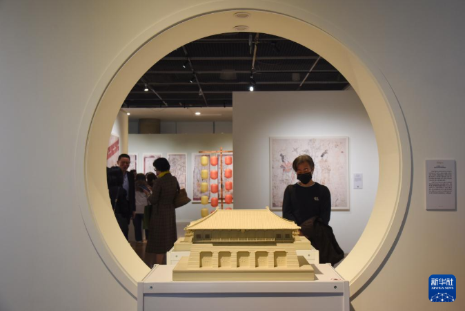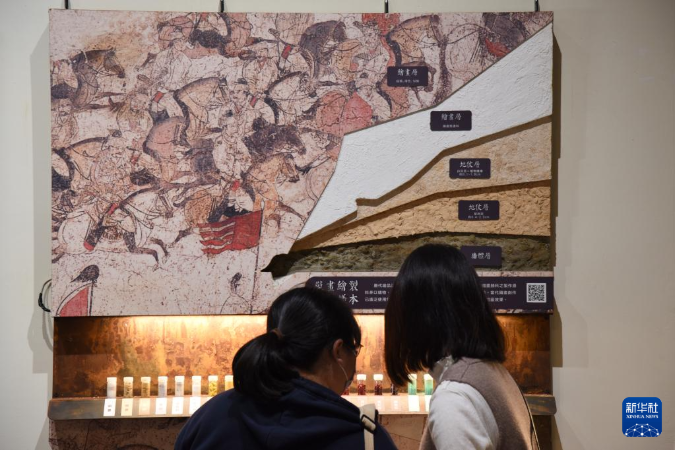 2月25日,觀眾在欣賞唐代壁畫高清數(shù)字打印圖像。新華社記者 劉斐 攝