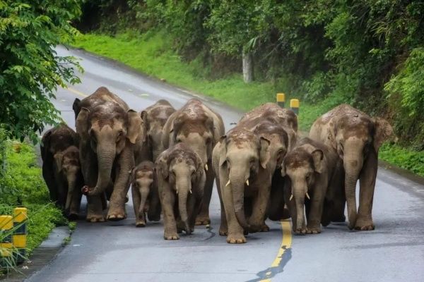 磨憨口岸每日吞吐著千余輛跨境貨車,鋼鐵洪流與熱帶季風(fēng)在此交匯。疲憊的司機(jī)習(xí)慣將車輛停在路邊,而時(shí)不時(shí),象群便集體出動(dòng),將公路化作“走廊”遷徙移動(dòng)。生態(tài)與經(jīng)濟(jì)并行,繁榮與自然相依,象群與貨車同路,仿佛在訴說(shuō)著一個(gè)關(guān)于人類與自然彼此尊重、共同發(fā)展的故事。