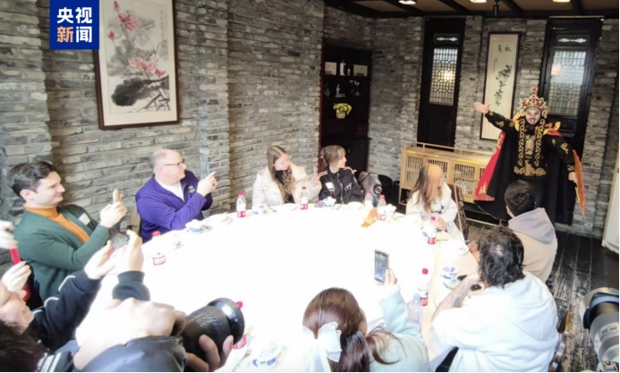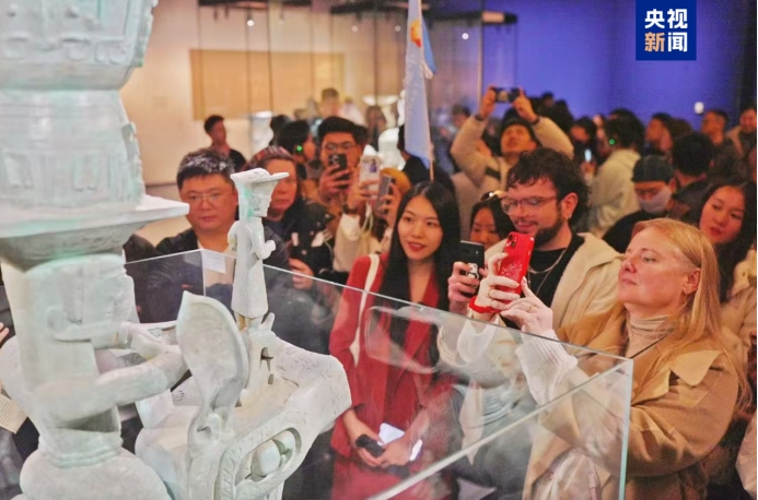 外國游客們體驗(yàn)中國茶藝、觀看中國非物質(zhì)文化遺產(chǎn)代表性項(xiàng)目川劇變臉、參觀游覽三星堆博物館,沉浸式感受中國傳統(tǒng)文化的深厚底蘊(yùn)。在三星堆博物館,電影《哪吒2》里結(jié)界獸的原型青銅人像吸引了游客們駐足觀看、拍照打卡。