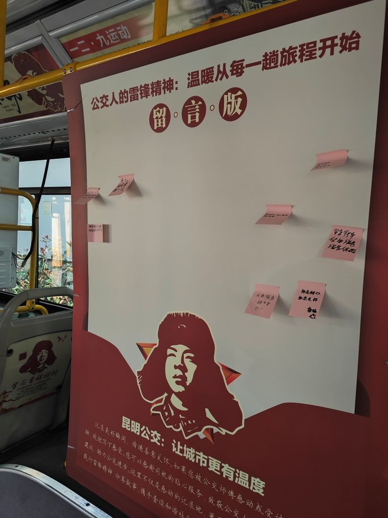 活動(dòng)當(dāng)天,昆明公交將61路(自編號(hào)為6 - 13 - 4295)公交車打造成雷鋒主題公交,全天免費(fèi)乘坐。當(dāng)天乘坐雷鋒主題公交的乘客可在“雷鋒精神留言板“上分享自己身邊的雷鋒故事,寫下對(duì)雷鋒精神的理解和感悟。雷鋒主題公交車內(nèi)布置與雷鋒精神相關(guān)的宣傳材料,讓乘客在乘車過(guò)程中潛移默化地受到雷鋒精神的熏陶。同時(shí),青年志愿者將開(kāi)展車內(nèi)宣講和幫扶活動(dòng),傳遞正能量,營(yíng)造溫馨和諧的乘車環(huán)境,吸引更多市民關(guān)注和參與此次活動(dòng),提升市民對(duì)雷鋒精神的認(rèn)知度和認(rèn)同感。昆明公交還與銀河社區(qū)開(kāi)展幫扶“微心愿”活動(dòng),為社區(qū)居民送去溫暖與關(guān)懷。